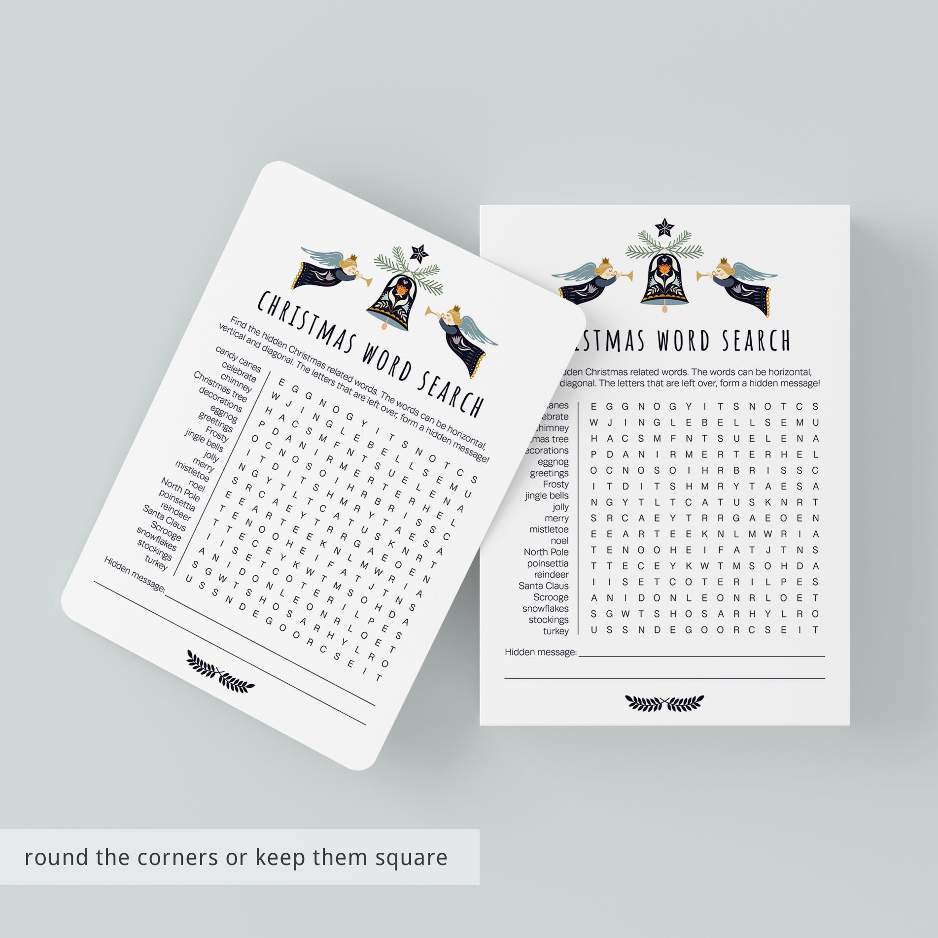 This popular holiday game is a fun activity for family get-togethers, company Christmas parties and for classrooms. Let everyone search for all holiday related words that are listed on the game cards. The words can be found horizontally, vertically and diagonally.