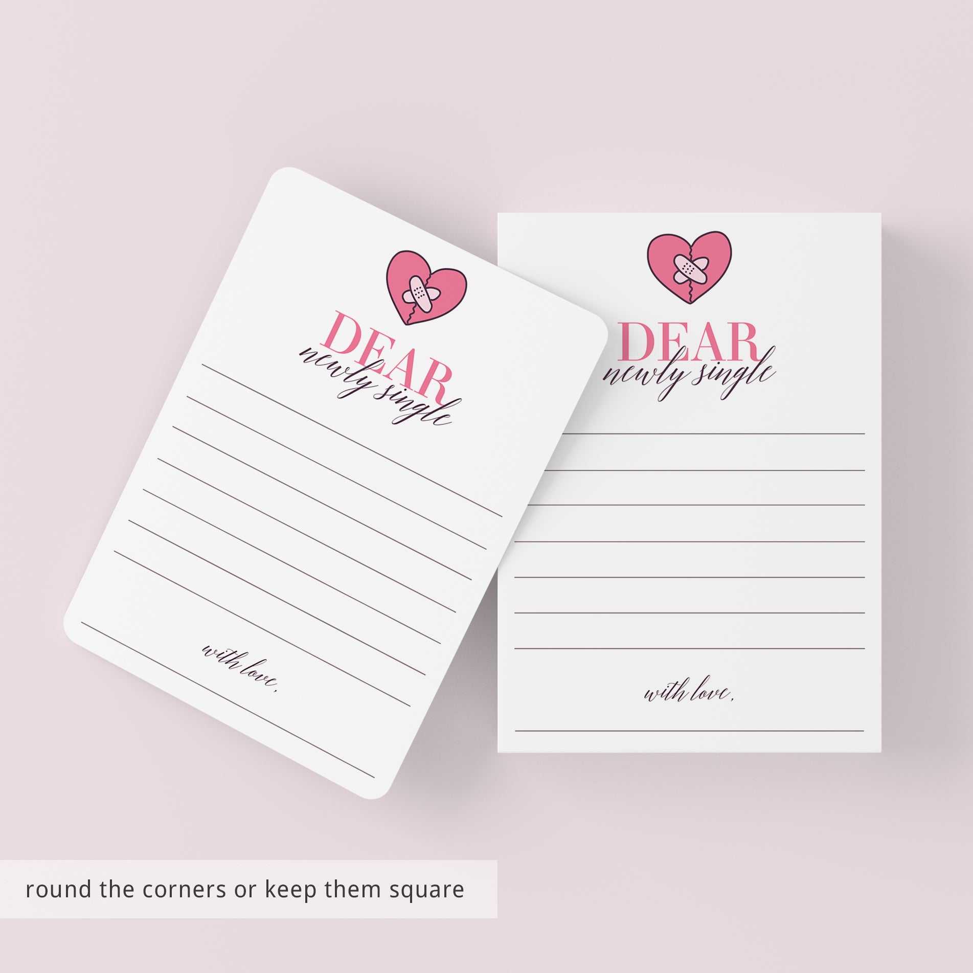 Help the newly single move on after breakup with these printable Well Wishes & Advice After Breakup cards. They are the perfect addition to your breakup care package or breakup party. Let all your friends write down their words of encouragement for the newly single and collect the cards for the single lady.
