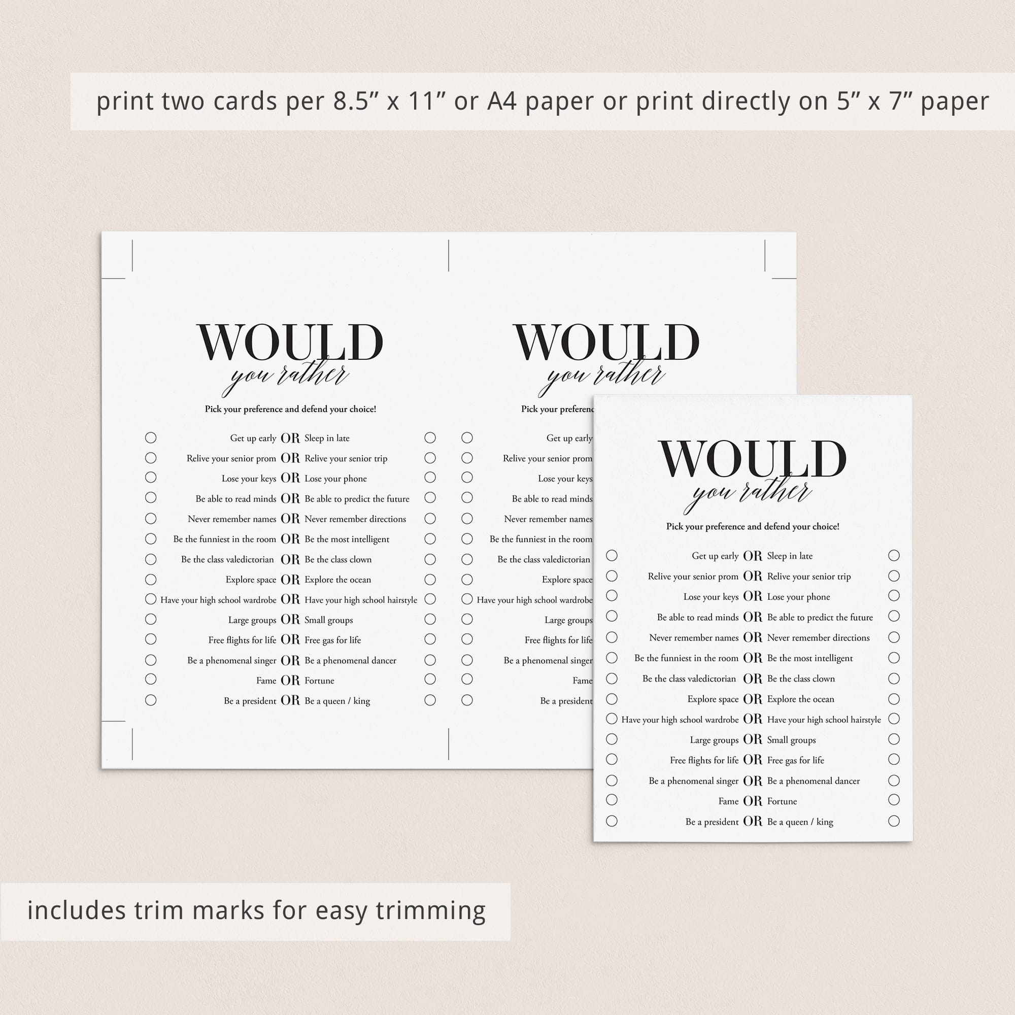 Would You Rather Questions for a Class Reunion | Printable Cards