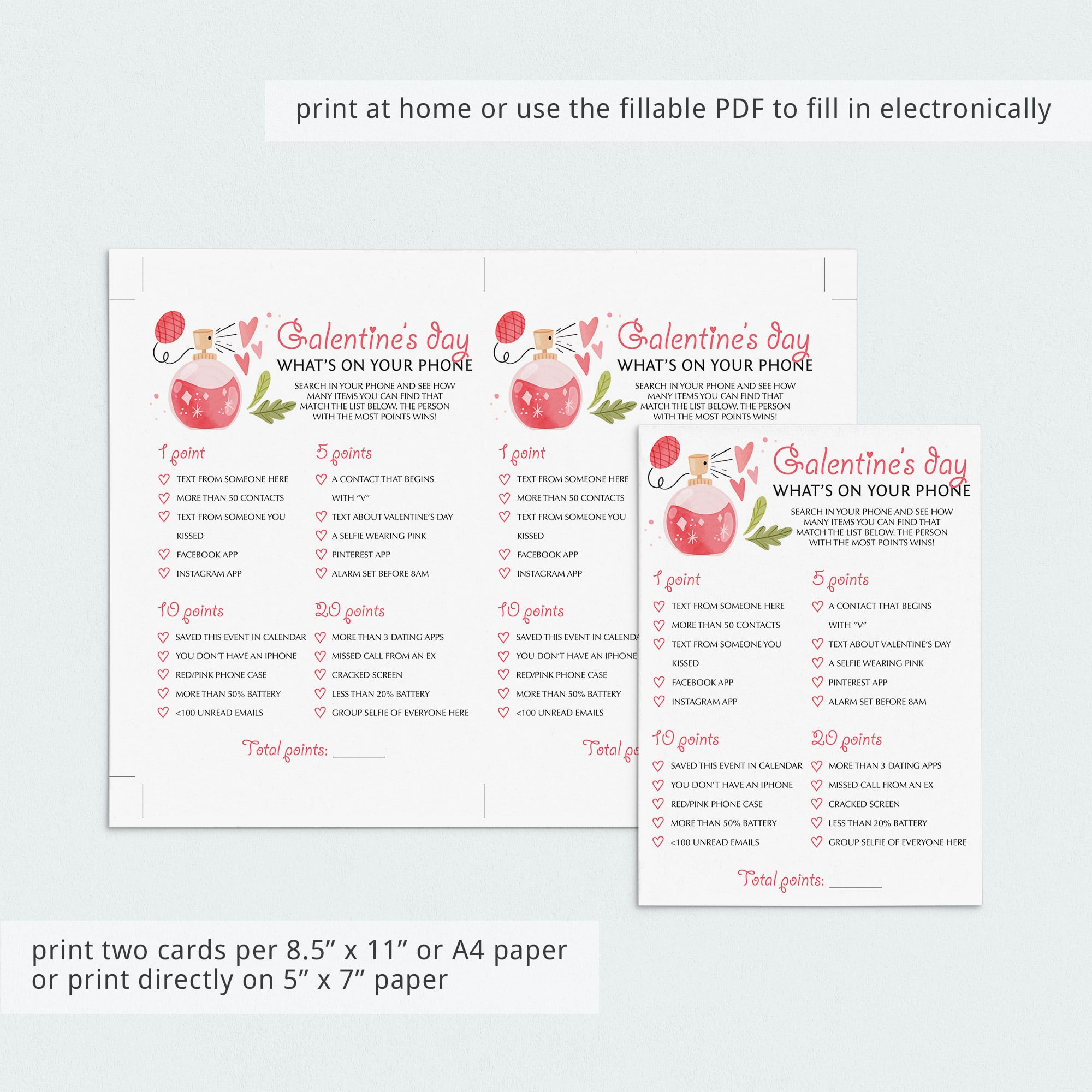 All guests need to play is a smartphone and one of these cute What's On Your Phone game cards. Printable and electronically fillable PDF templates are included. You can play in-person or on a video conference call app like Zoom or Teams.